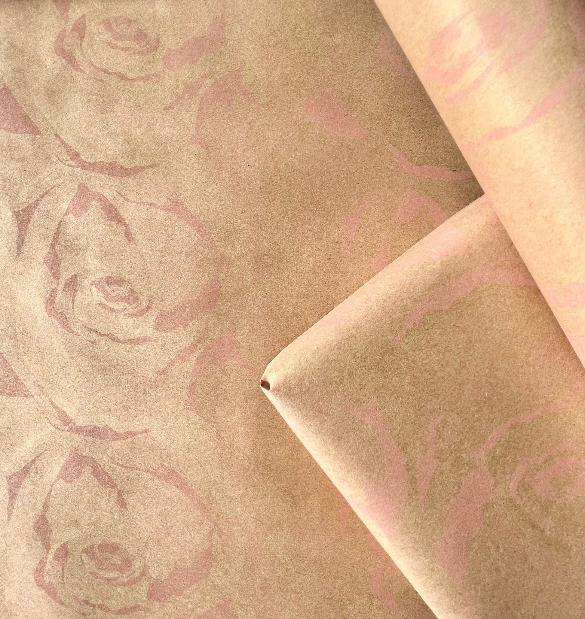 Wrapping Paper Baby Pink Rose 50CM Wide Eco Friendly, 100% Recycled Kraft | Recyclable, Sustainable, Plastic Free Gift Wrap