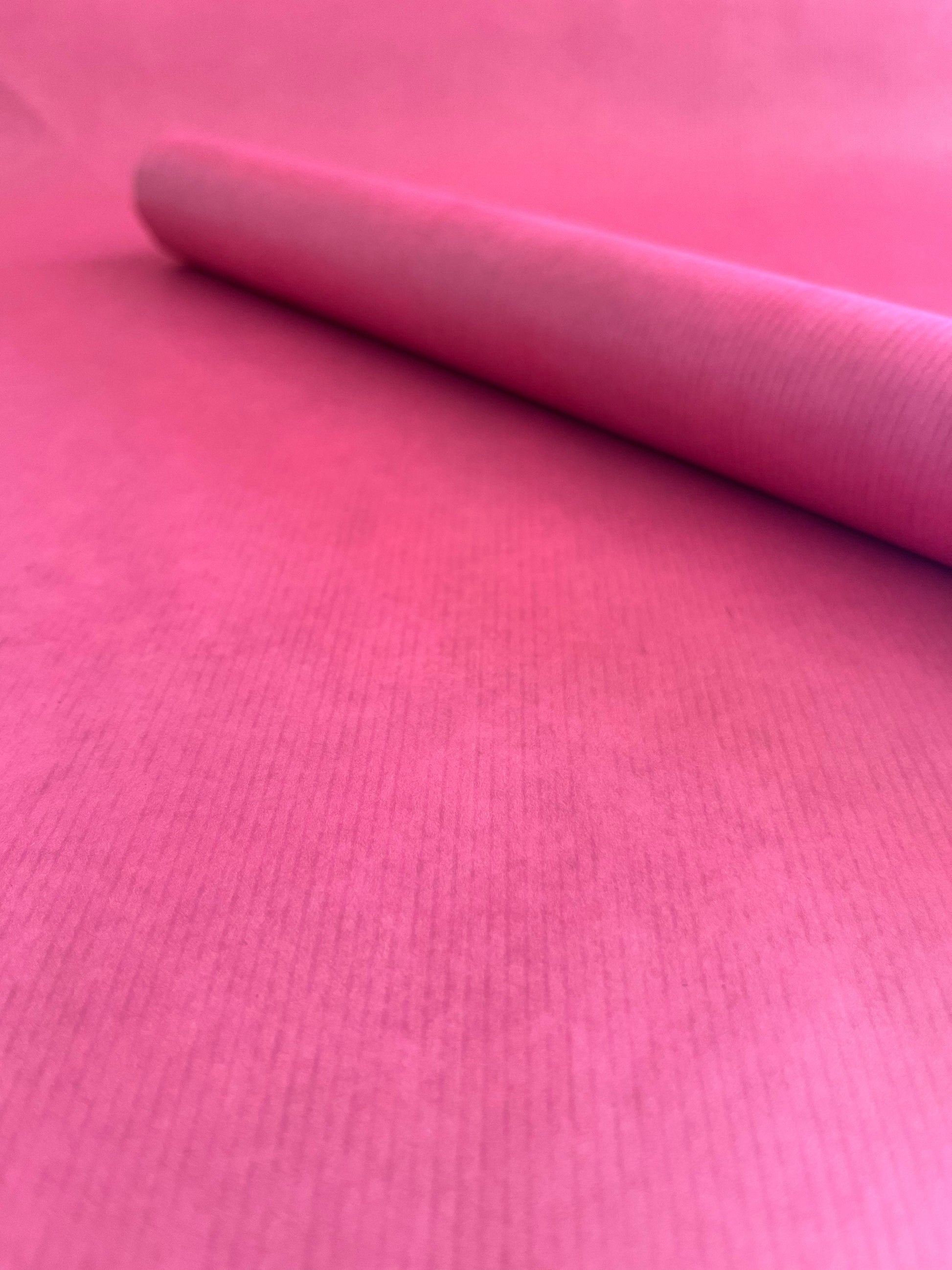 Our Blush Pink Kraft gift wrap is made of brown, ribbed 50 gsm kraft paper and printed Blush Pink on one side using Eco friendly, water based inks.