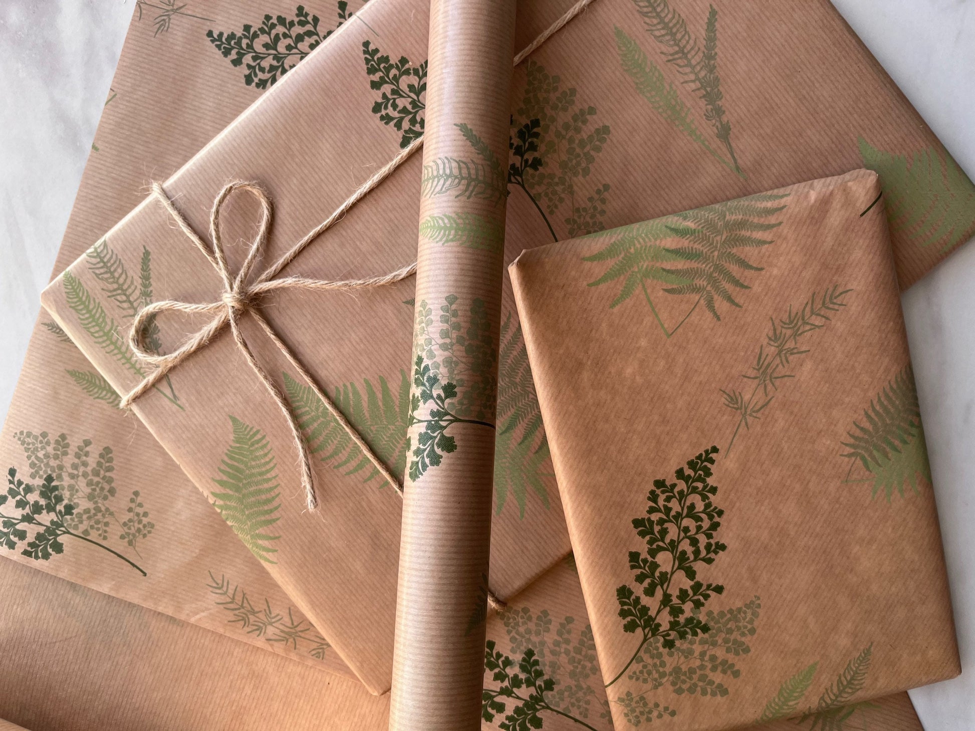 Wrapping Paper Botanical Leaves 50CM Wide Eco Friendly, 100% Recycled Kraft | Recyclable, Sustainable, Plastic Free Gift Wrap
