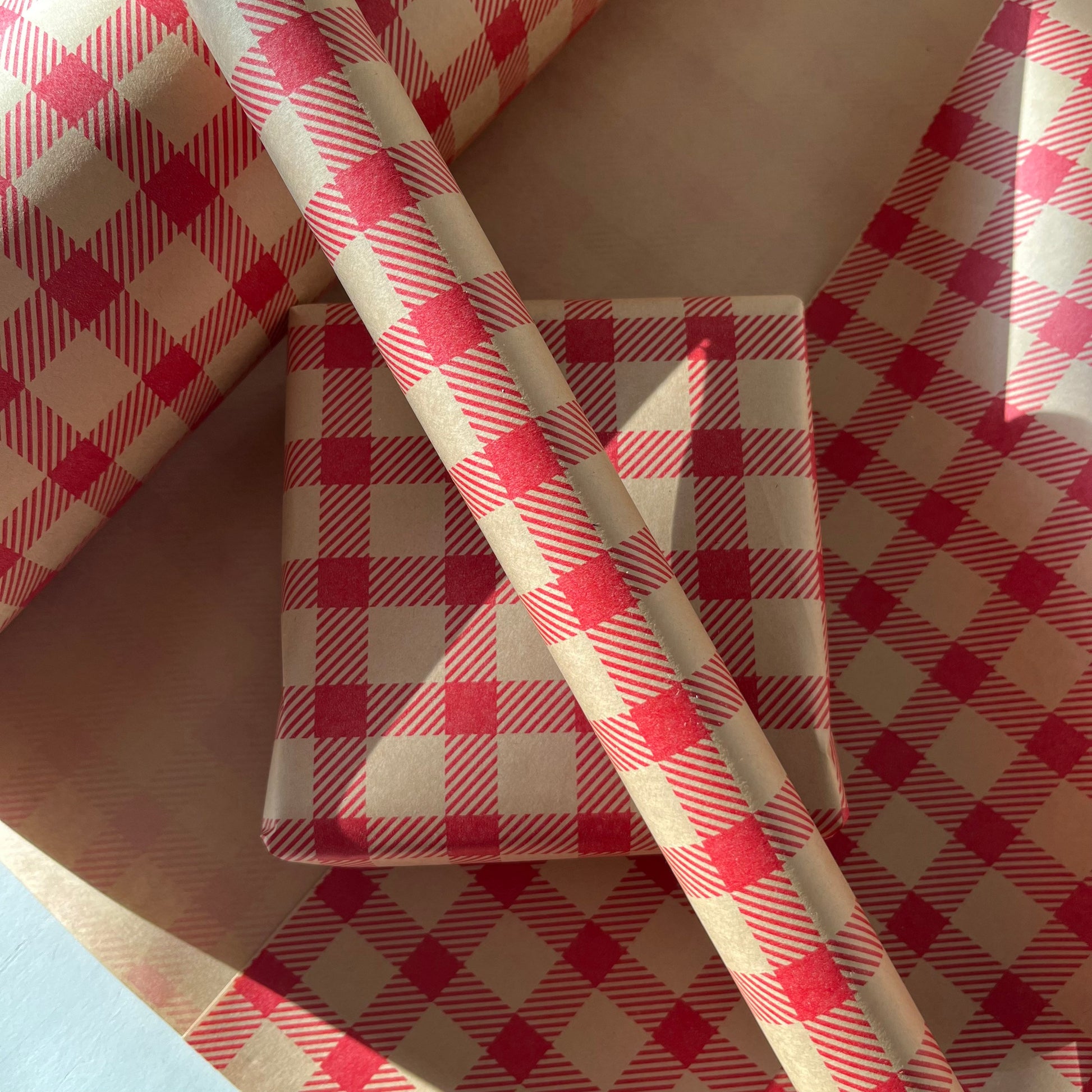Wrapping Paper Red Gingham Check 50CM Wide Eco Friendly, 100% Recycled Kraft | Recyclable, Sustainable, Plastic Free Gift Wrap